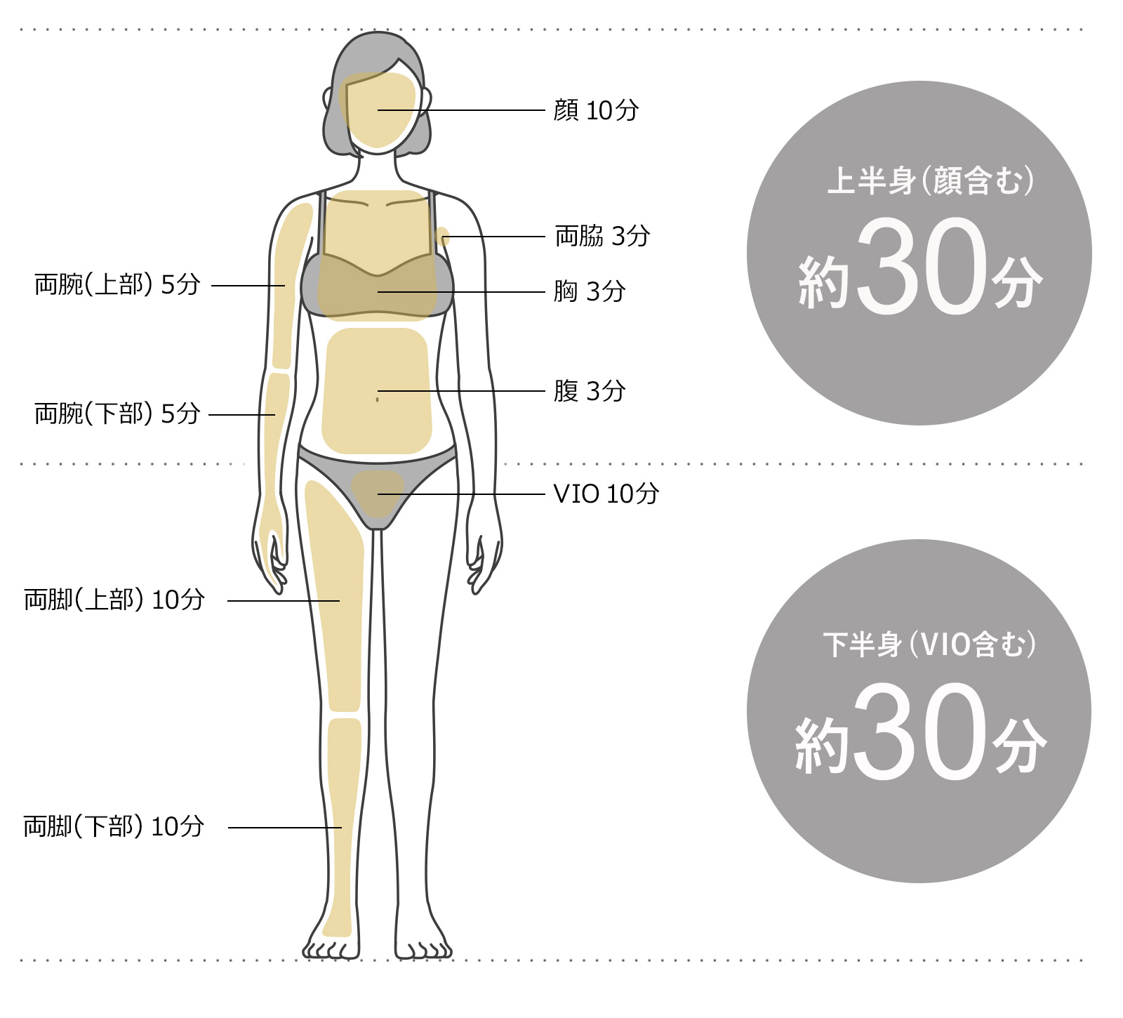 部分的な脱毛なら30分で十分でした! パーツ毎に料金を払わなくていいので助かります!