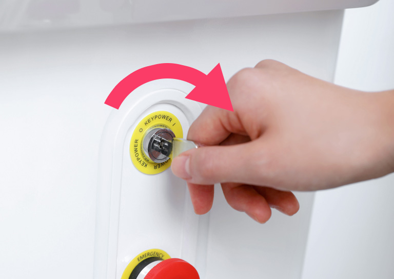 脱毛マシン中央にあるカギを右に回して待機画面をタッチしてください。
