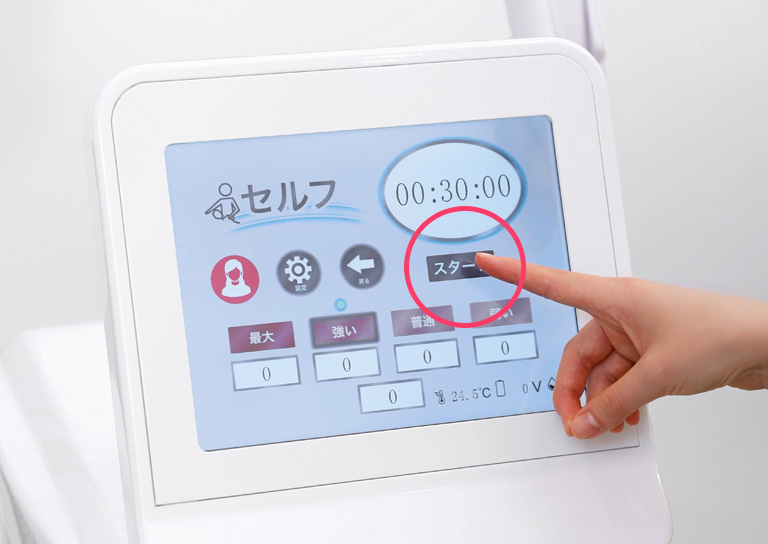 セルフ脱毛に特化した当サロンの脱毛マシンは、脱毛初心者の方でも安心してご利用いただける「セルフモード」を搭載しています。出力調節や時間管理も簡単に行えるユーザビリティに優れた脱毛マシンです。