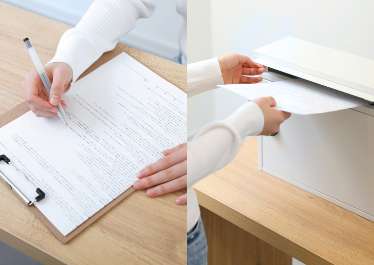 サロン内に準備されている同意書に記入を行い、サロン内に設置されているポストに同意書を投函してください。 ※2回目以降は不要です。