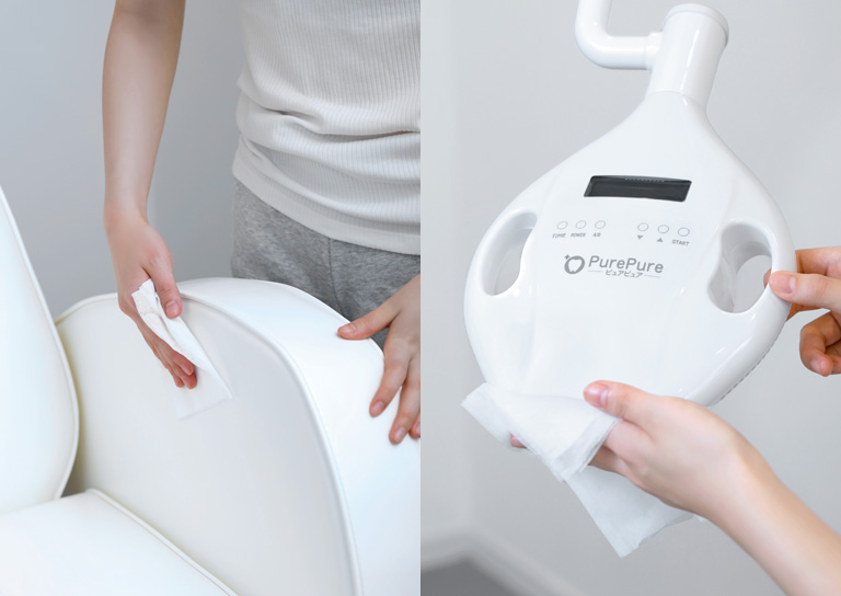 ティッシュなどで歯の表面の水分をお拭き取りください。