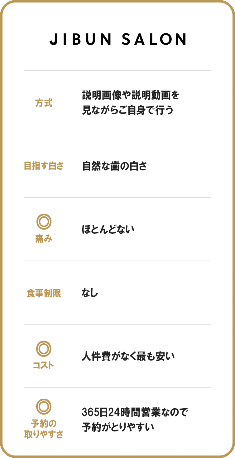 JIBUN SALONは「最高の自分磨き空間」をコンセプトに掲げた 完全無人プライベートサロンです。プロ仕様の本格マシンを使用したセルフ脱毛・セルフホワイトニングが、月額3,000円(税込)からご利用いただけます。