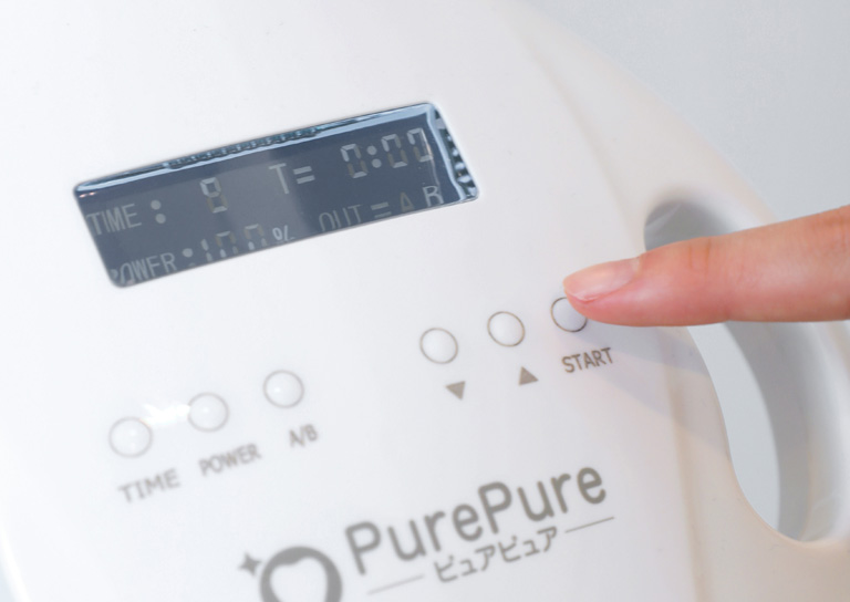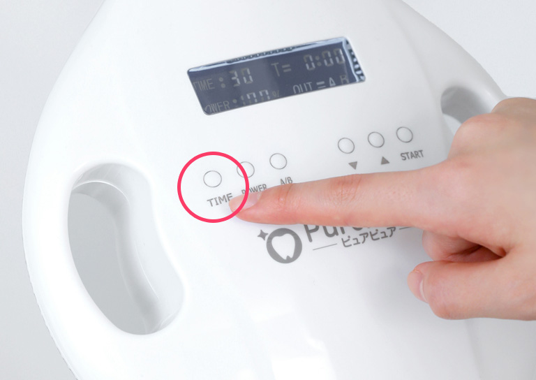 ホワイトニングマシン中央にあるスイッチを押してください。