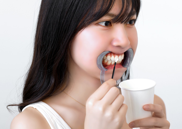 ジェルを付けたまま歯磨きを行い、口を軽くゆすいでください。